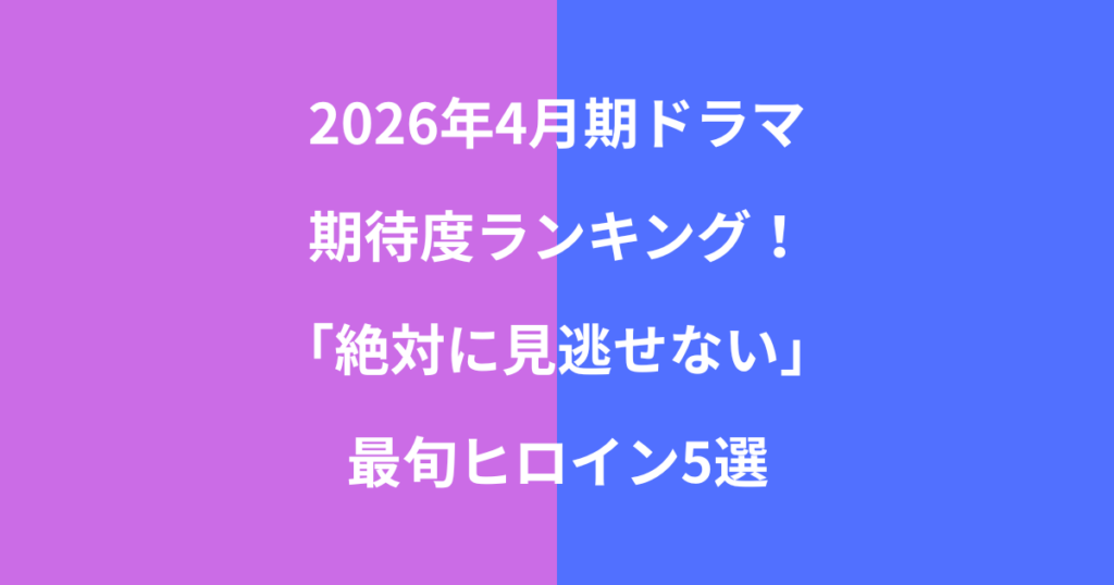 2026年4月期ドラマ期待度ランキング!今期「絶対に見逃せない」最旬ヒロイン5選