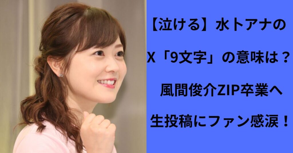 【泣ける】水卜アナのX「9文字」の意味は?風間俊介ZIP卒業への“異例の生投稿”にファン感涙!