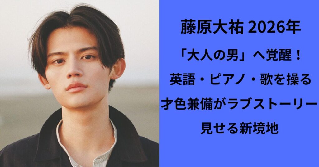 「天は二物どころか三物を与えた」――。流暢な英語、プロ級のピアノ、そして心に染み渡る歌声。 藤原大祐(ふじわら たいゆ)さんを語る上で、その多才さは欠かせない要素です。 しかし、2026年春、彼が私たちに見せようとしているのは、そんな「完璧な優等... -