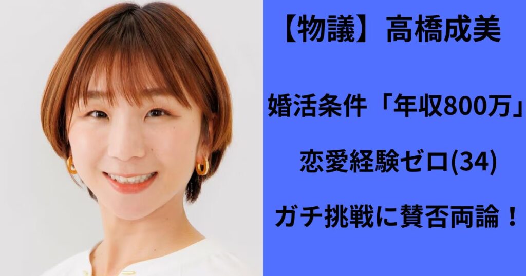 【物議】高橋成美の婚活条件「年収800万」は高望み?恋愛経験ゼロ(34)のガチ挑戦に賛否両論!