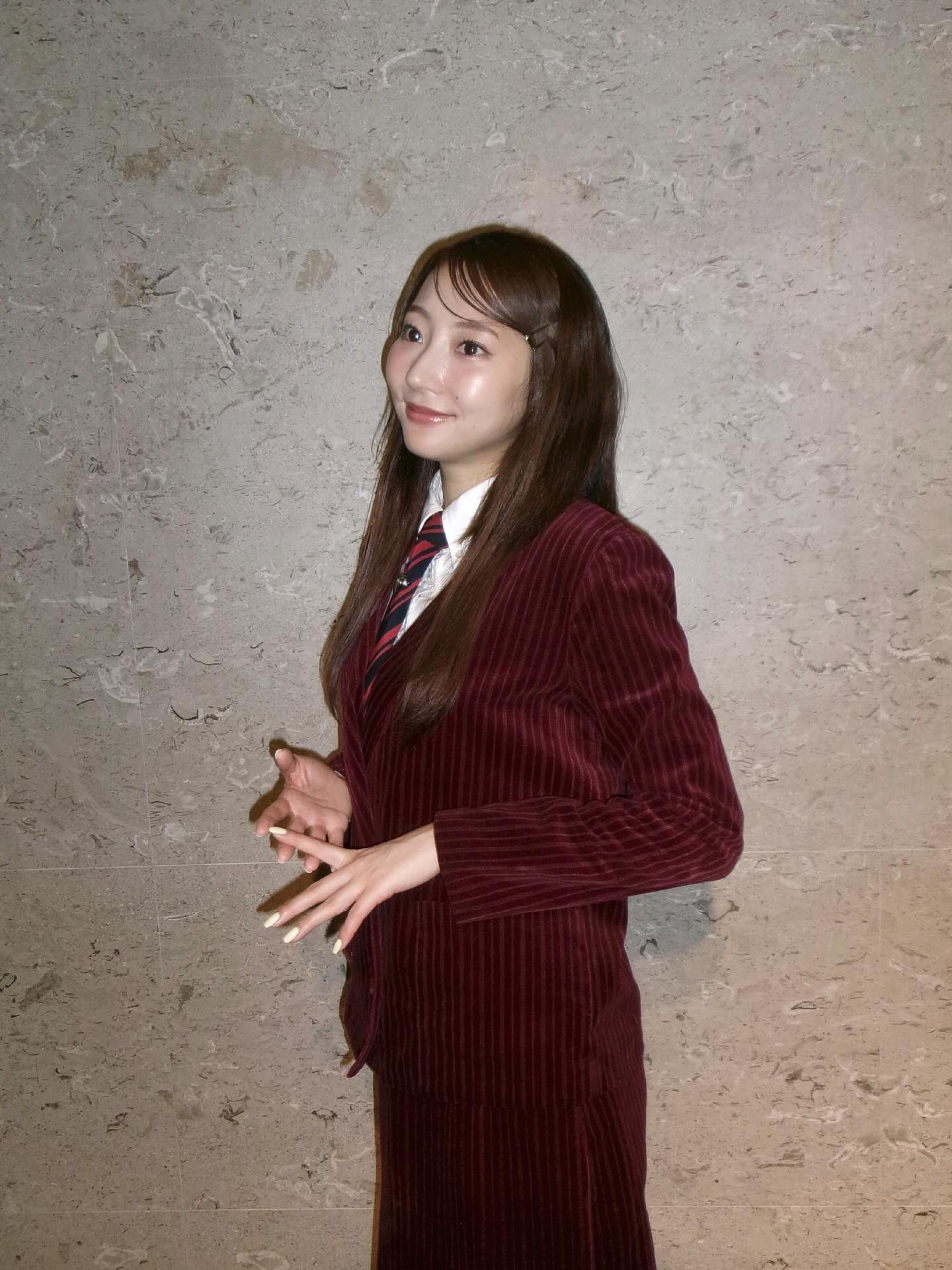 これまでの可憐なイメージとは一線を画す、キリッとしたスーツ姿に
